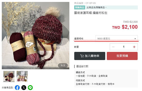 ※材料包內容僅包含兩綑織間,請勿選擇兩種以上顏色,
