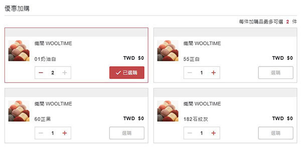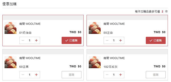2. 0元加購:選兩捆織間wooltime