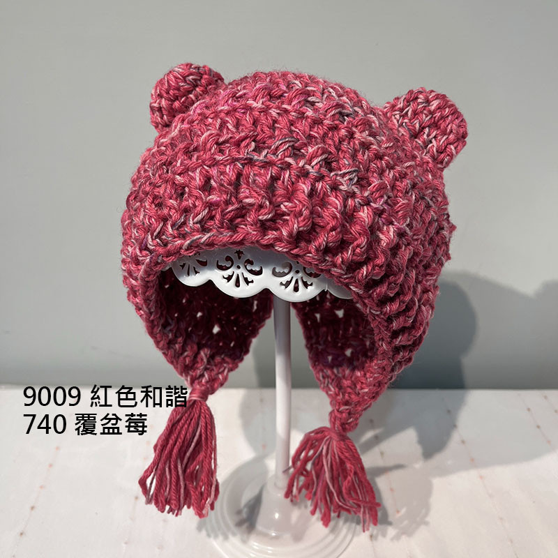 共可完成一頂成人尺寸護耳帽 + 一頂兒童尺寸護耳帽或一頂寶寶尺寸護耳帽